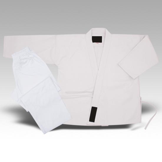 Material: 100% Canvas Cotton 14ozOth. Materials: 100% Canvas Cotton White and BlackBrief Description: 100% Canvas Cotton Jacket and Pant with drawstring waist.Colors: White,Dark,Blue,Red,GreenSizes: 0000 /100cm to 8/210cm